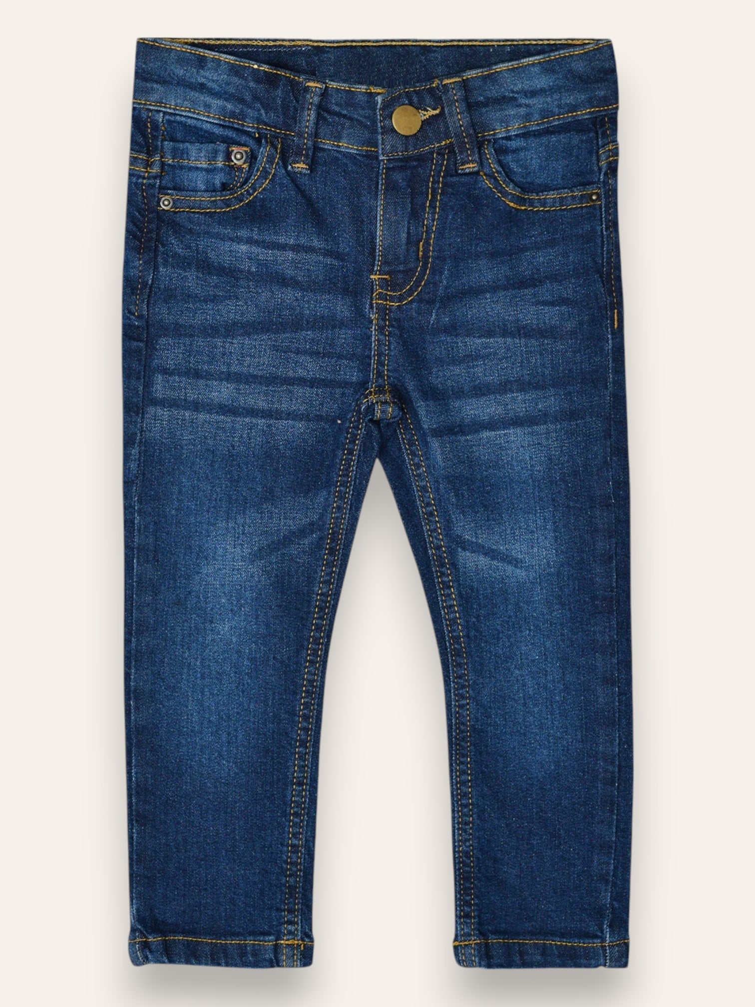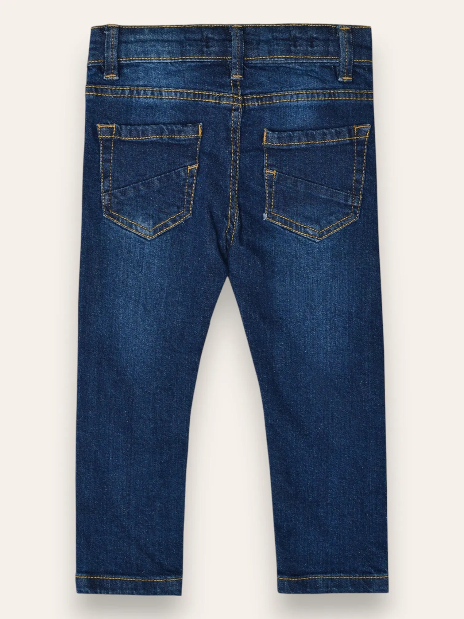 Dark washed blue denim jeans is made from soft strectch denim fabric for comfort. It comes with an elascticated waist band for all ages for easy waist adjustment.