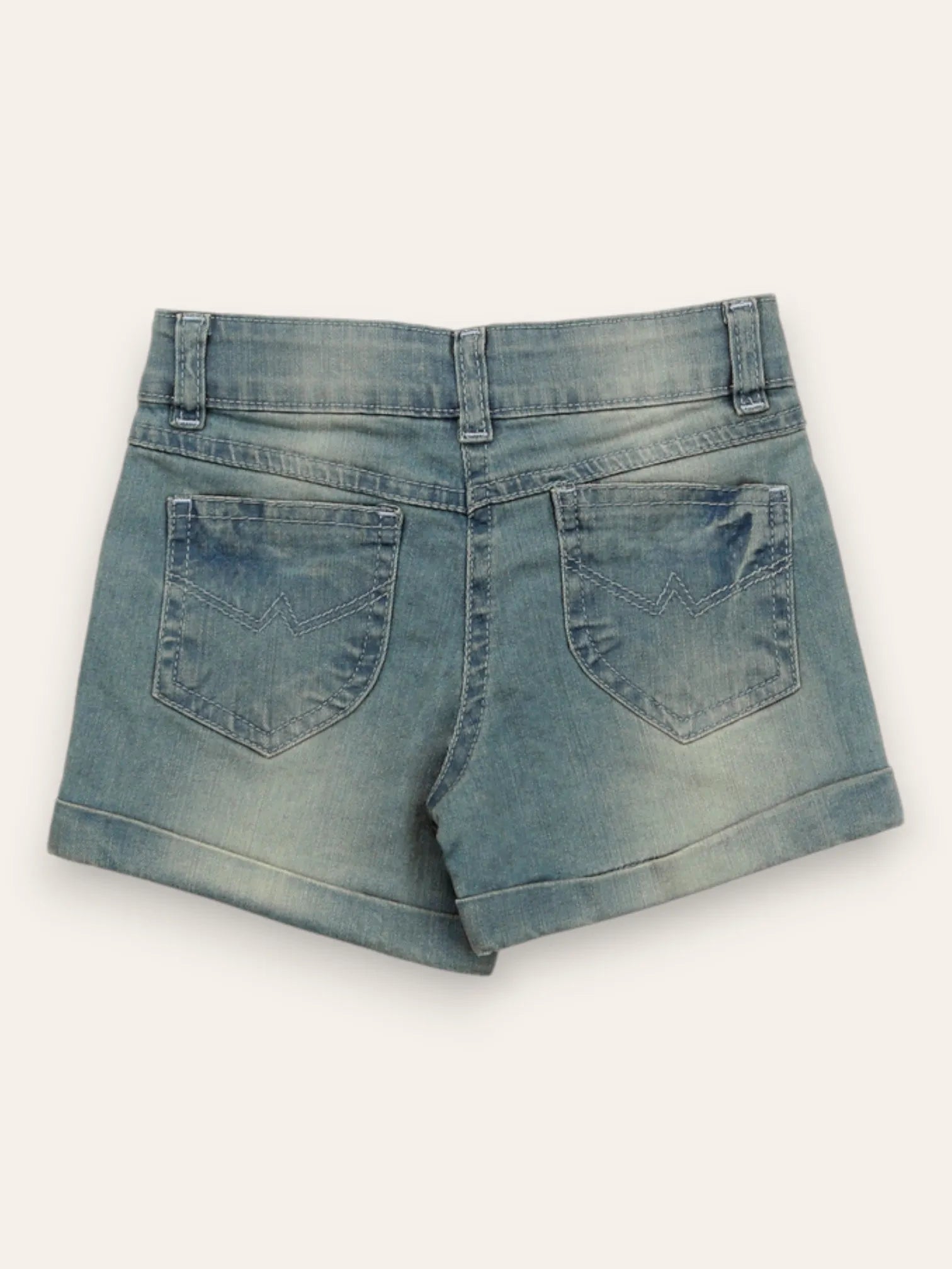 Denim short is crafted from soft denim fabric in a light wash. It comes with an elasticated adjustable waist band and tagging to retain denim look.