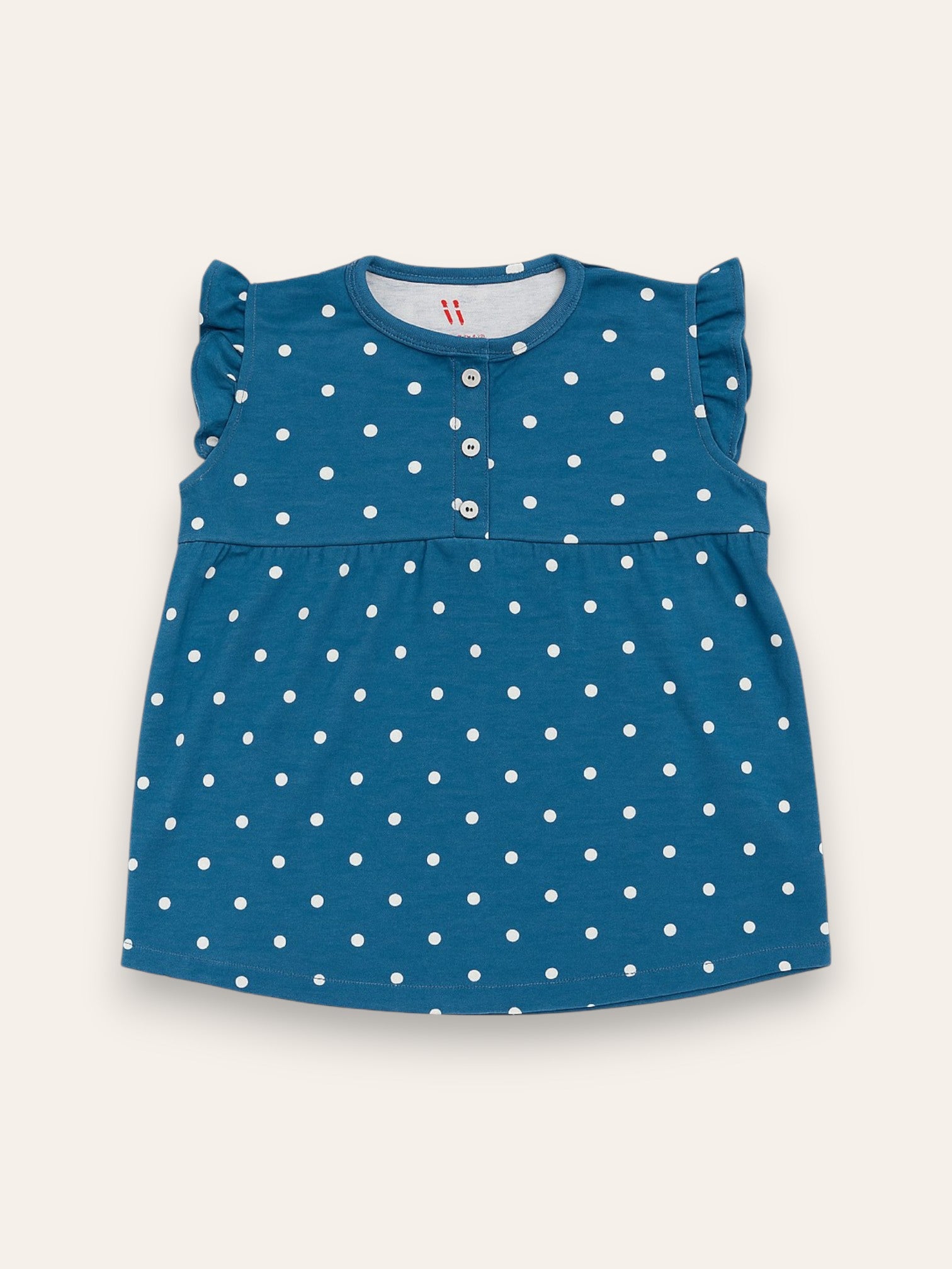Girls Polka Dot top is made from soft interlock knit jersey in teal green color. It features front button placket for ease in wearing and is made in an A line shape for style..
