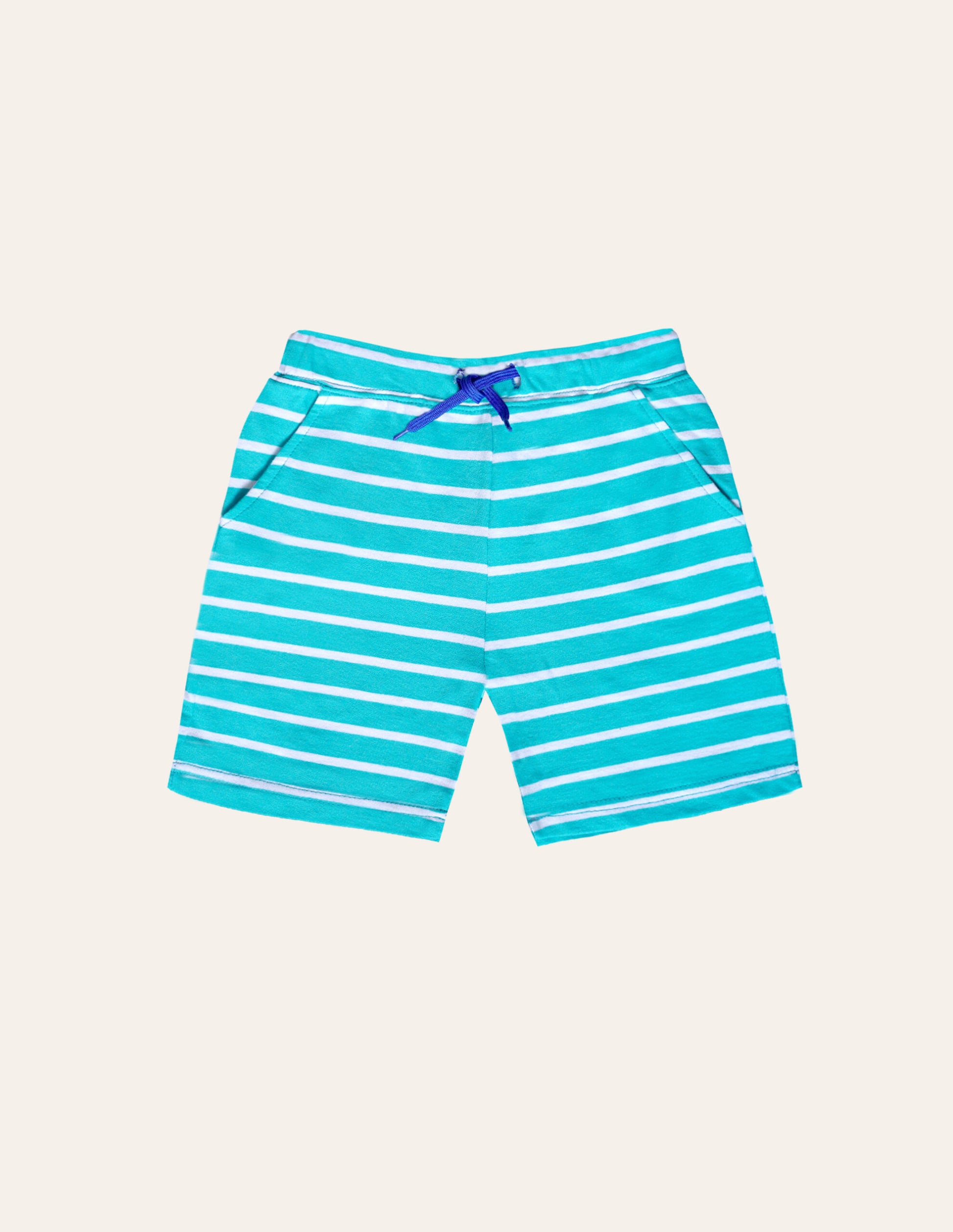 Green & White striped shorts are made from soft french terry. It comes with an elasticated waist band and drawstrings for comfort wear and waist adjustment.