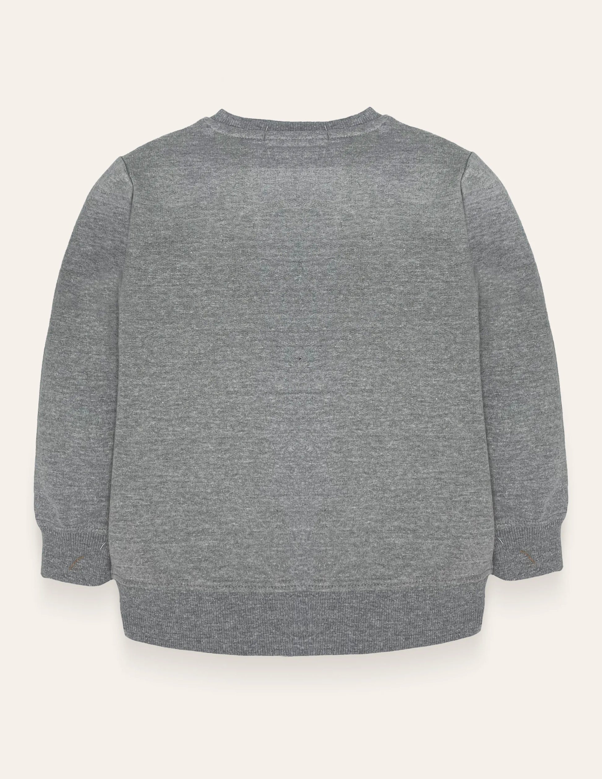 This colorful printed sweatshirt in heather grey is made from soft french terry to make your winters cozy and bright.