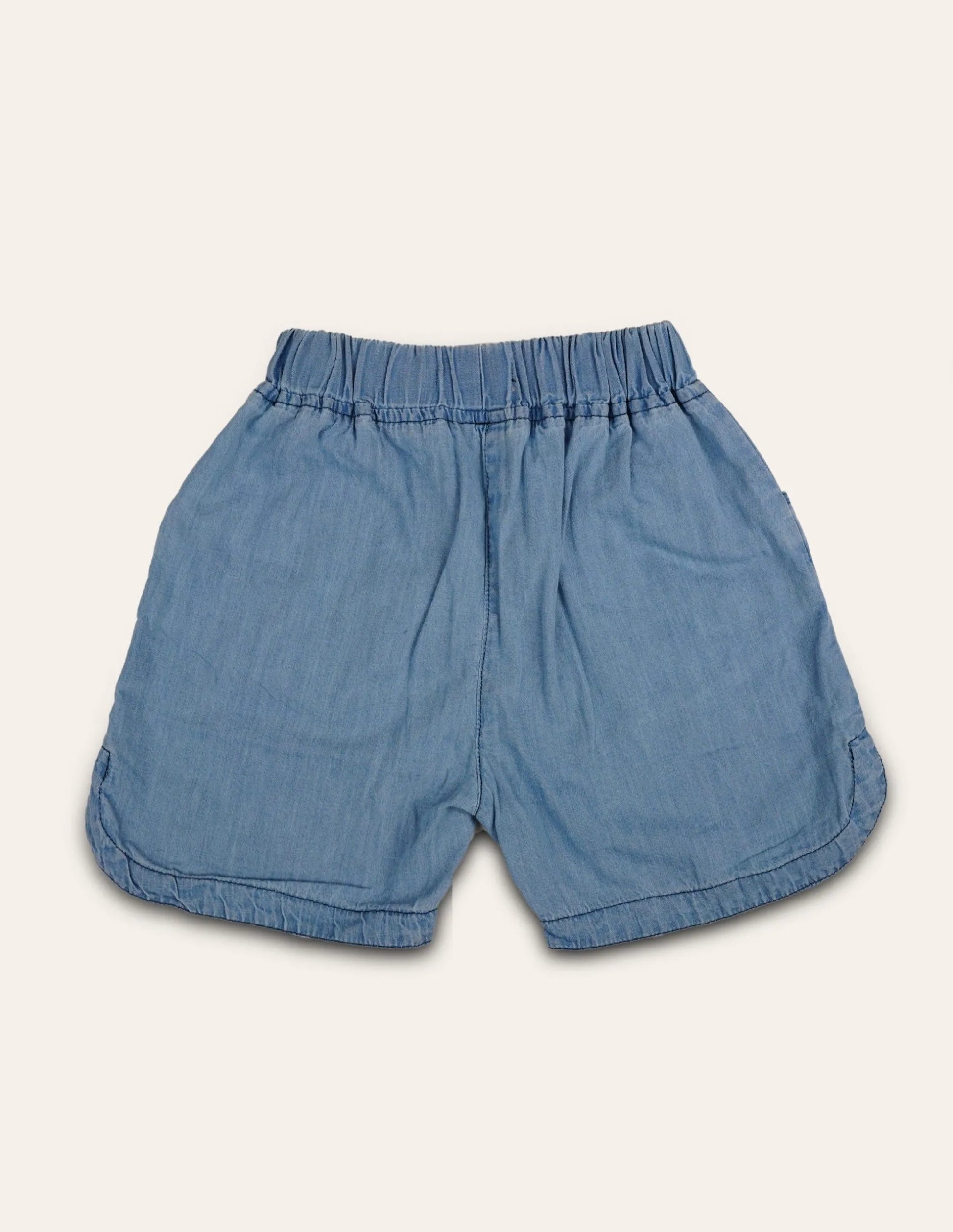 Star embroidered shorts in soft super-light weight denim fabric features front pockets and an elasticated waist which makes it easy to pull on and off.